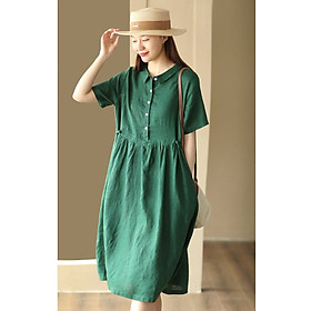 Đầm Sơ Mi Cotton, chất liệu cotton mềm mại, mỏng nhẹ. Phần trước ngực đính hạt tạo hình lá độc đáo. Có túi 2 bên hông, Mặc phối với quần short hoặc legging bên trong.