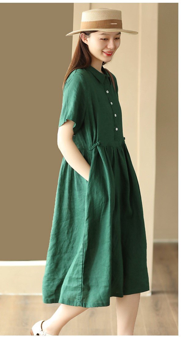 ✨Đầm suông nữ cổ sơ mi thiết kế nút thắt bên eo kèm túi 2 bên tiện lợi, sang chảnh da215