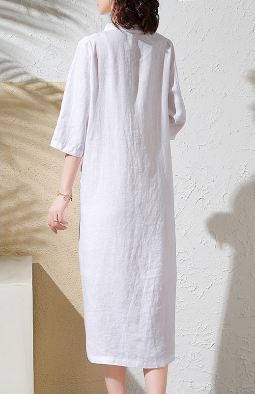 ✨Đầm suông trắng linen phối cúc, thiết kế cổ V thanh lịch, đầm có túi tiện lợi NH190