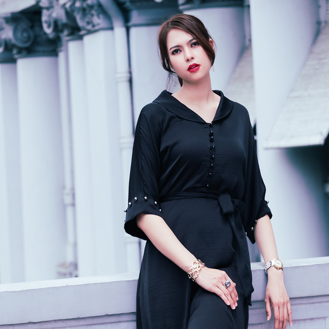 Đầm cho người mập big size Nếu màu sắc càng đơn giản thì càng phù hợp với những bạn có thân hình to béo. Đặc biệt là lợi thế của màu đen sẽ đánh lừa