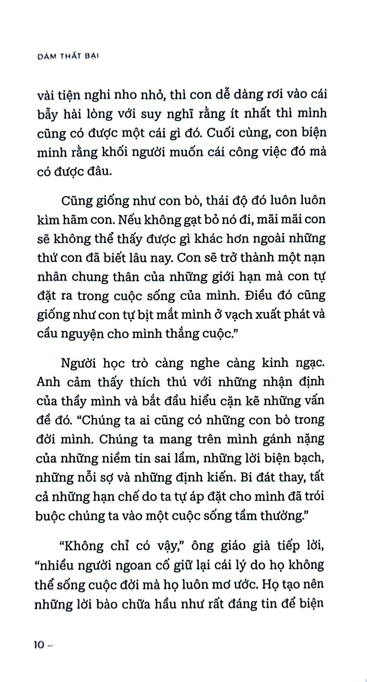 Dám Thất Bại DÁM THẤT BẠI - CƠ HỘI CHIA ĐỀU CHO TẤT CẢ MỌI NGƯỜI, NHƯNG LUÔN ƯU ÁI CHO NHỮNG NGƯỜI DÁM SỐNG CUỘC ĐỜI BẢN LĨNH Biết đủ đúng lúc khiến bạn trở thành bậc thầy khôn ngoan. Như...