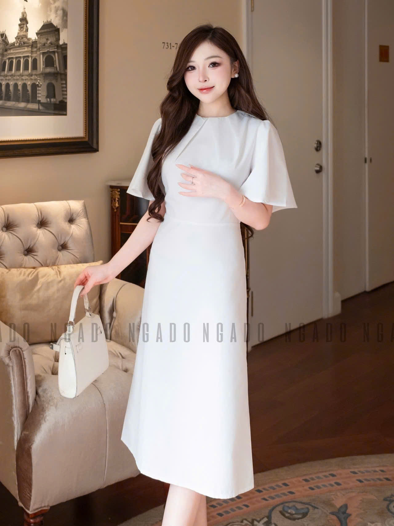 ღ THÔNG TIN SẢN PHẨM: Tên sản phẩm: Đầm trắng cổ xếp Màu sắc: trắng Chất liệu: Gấm trơn dày Chi tiết sản phẩm: không lót, không túi. Thông số