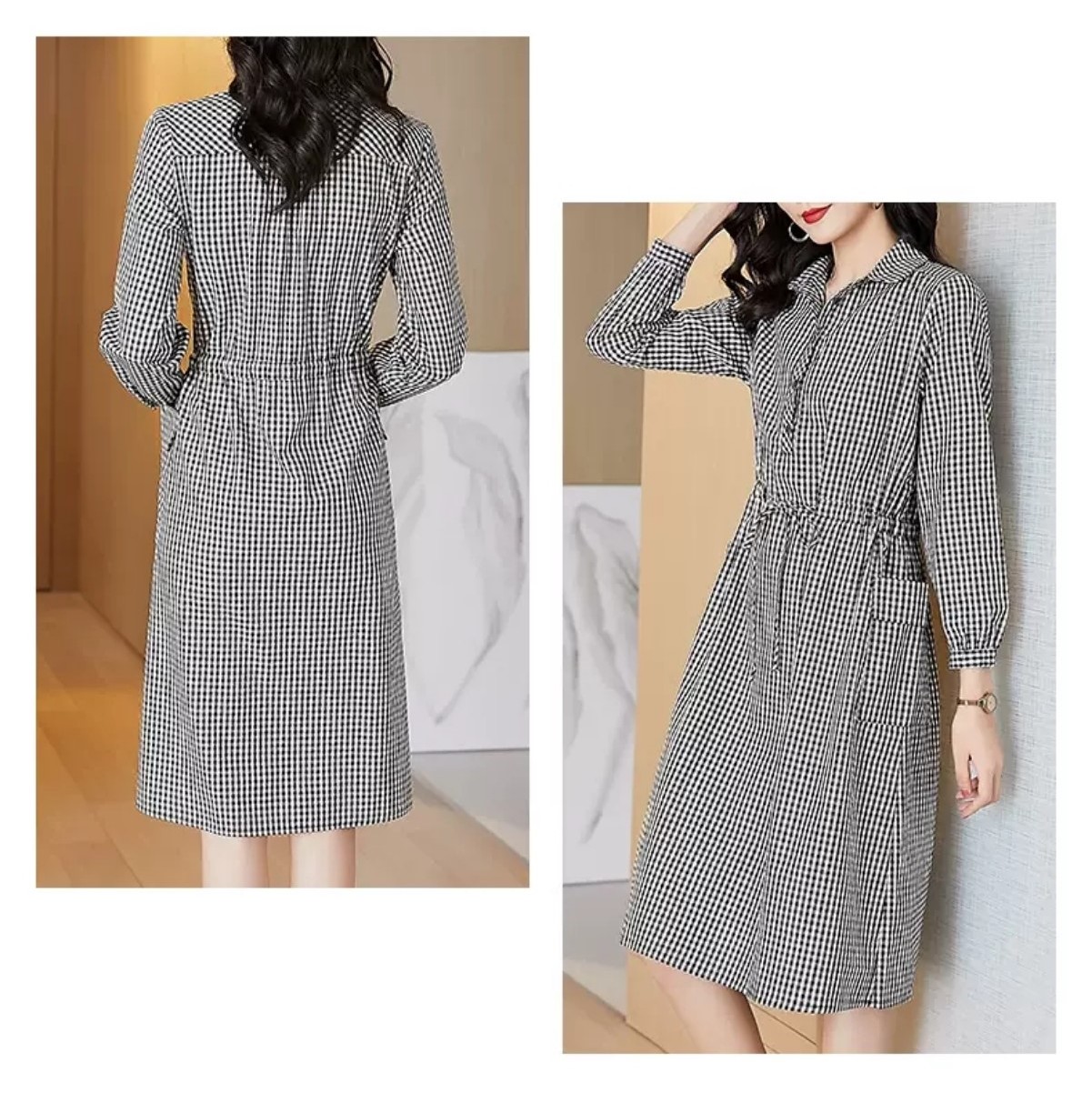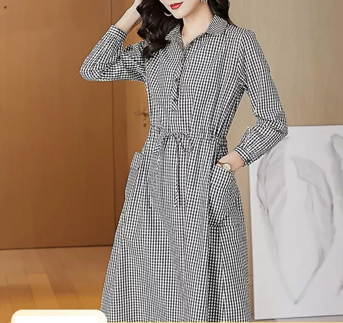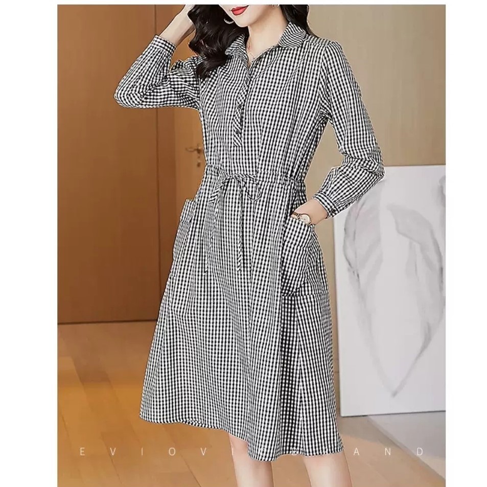 ✨Đầm váy sơ mi nữ caro dáng suông dài tay, có túi hông kèm dây chỉnh eo, chất vải thô đũi Haint Boutique
