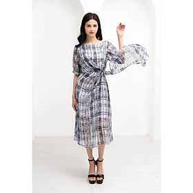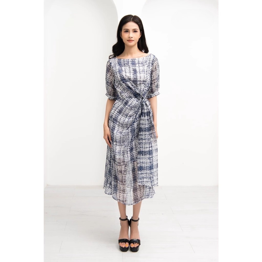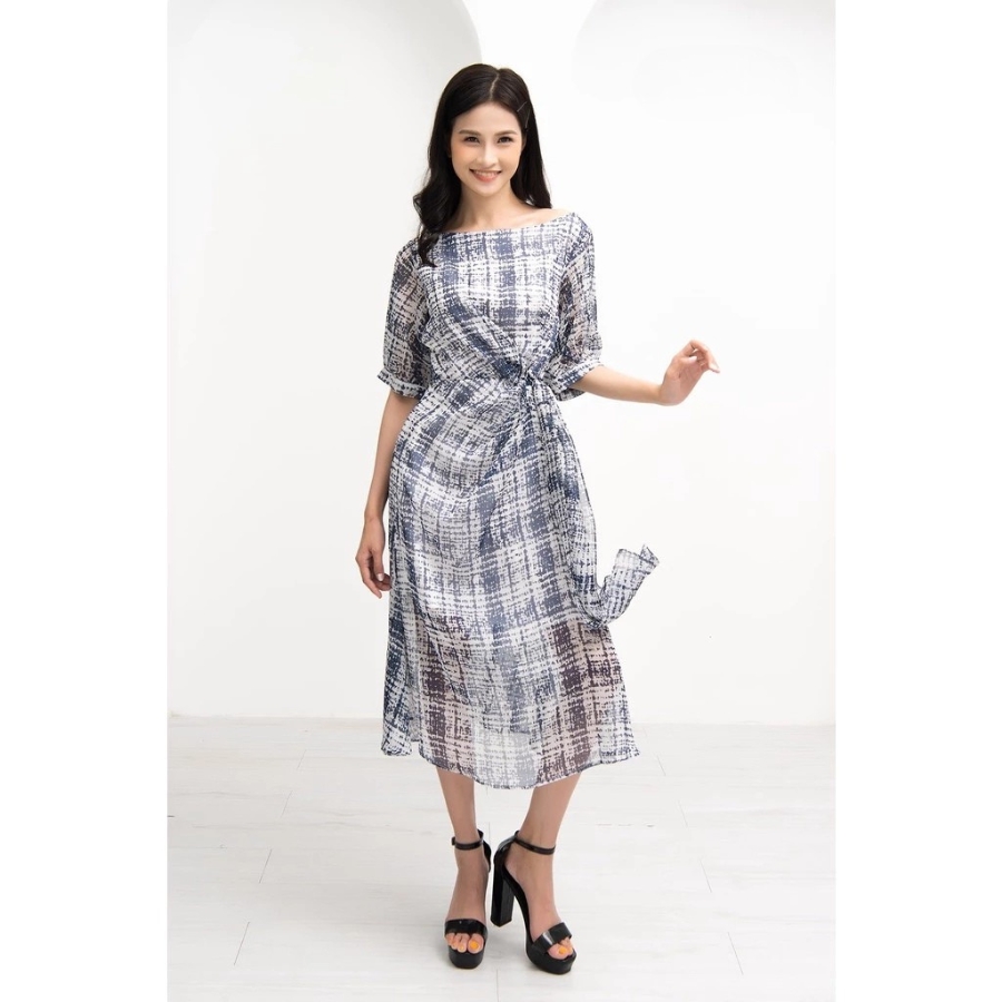 ✨Đầm Voan Xòe Loang Xanh Xoắn Eo Maxivic, La Mộc - LM72113