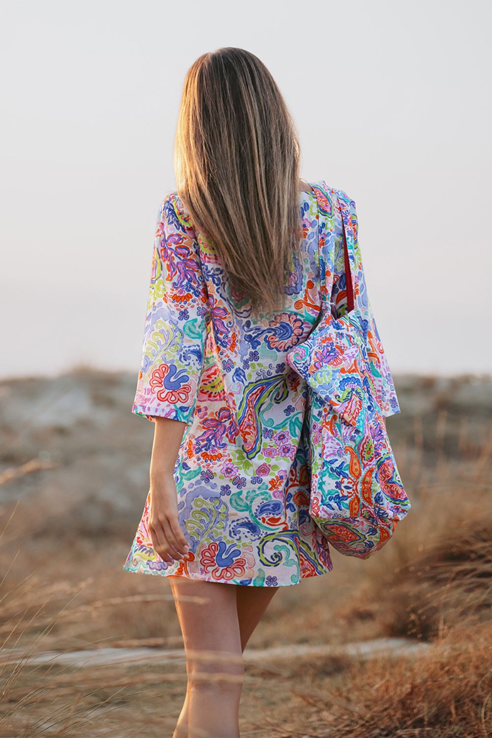 Đầm Boho Dài Tay Isla Bonita, chất lụa cao cấp, mềm mại, thun co giãn ở eo. Phom suông xòe rộng. Dài đầm 90cm (45x90) Phù hợp đi biển, dạo phố, công sở, hoặc dự