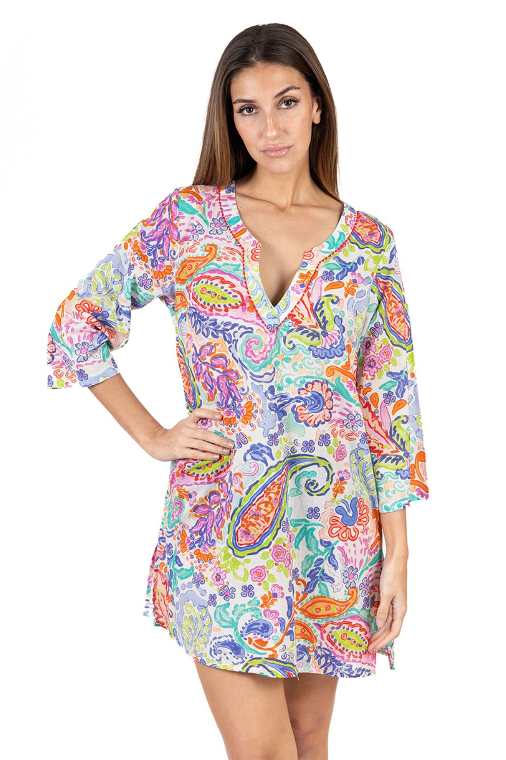 Đầm Sơ Mi Cotton Isla Bonita, chất liệu cotton 100% mềm mại. Đầm giấu quần, phối với quần short, legging. Phom suông. Dài đầm 105cm (45x105) Phù hợp đi biển, dạo phố, công sở, hoặc