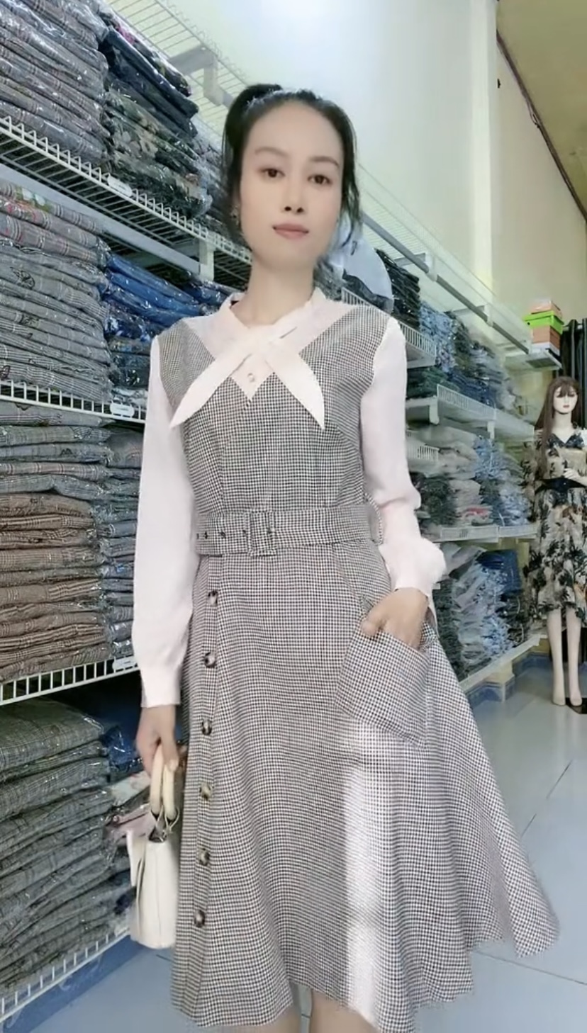 [Zonbig.com] - Đầm Váy Caro Cổ Sơ Mi Thanh Lịch