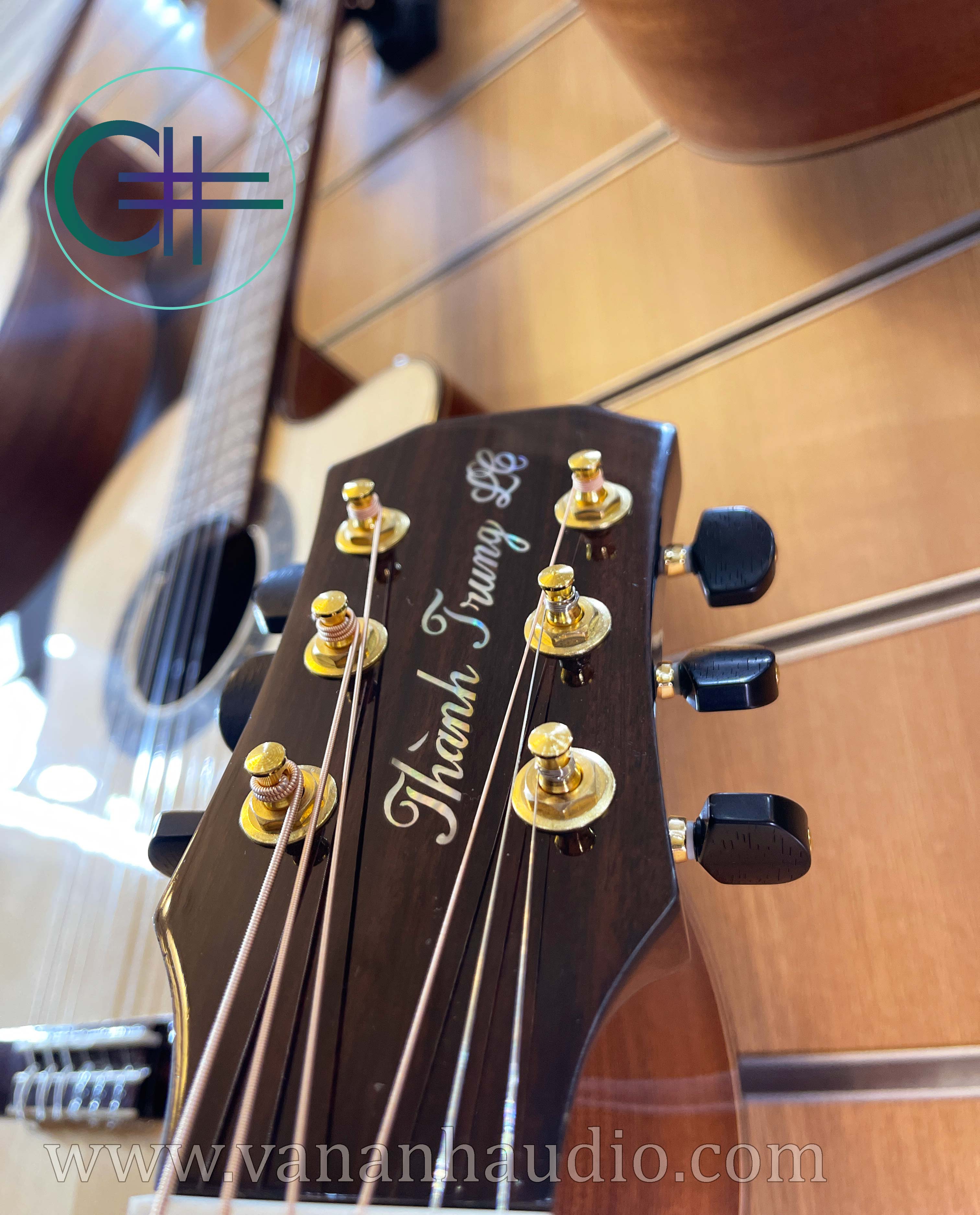 Đàn Guitar Acoustic CL2022 được sản xuất thủ công theo đơn đặt hàng thiết kế riêng cho anh Doãn Thành Trung. -Đàn được làm bằng chất liệu chính là gỗ Cẩm Ấn, được nghệ nhân khảm trai, ốc xà cừ lấp lánh sang trọng và tinh tế. -Văn Anh Audio nhận đặt hàng guitar Custom gỗ cẩm Ấn giá từ 13-17 triệu tuỳ theo yêu cầu