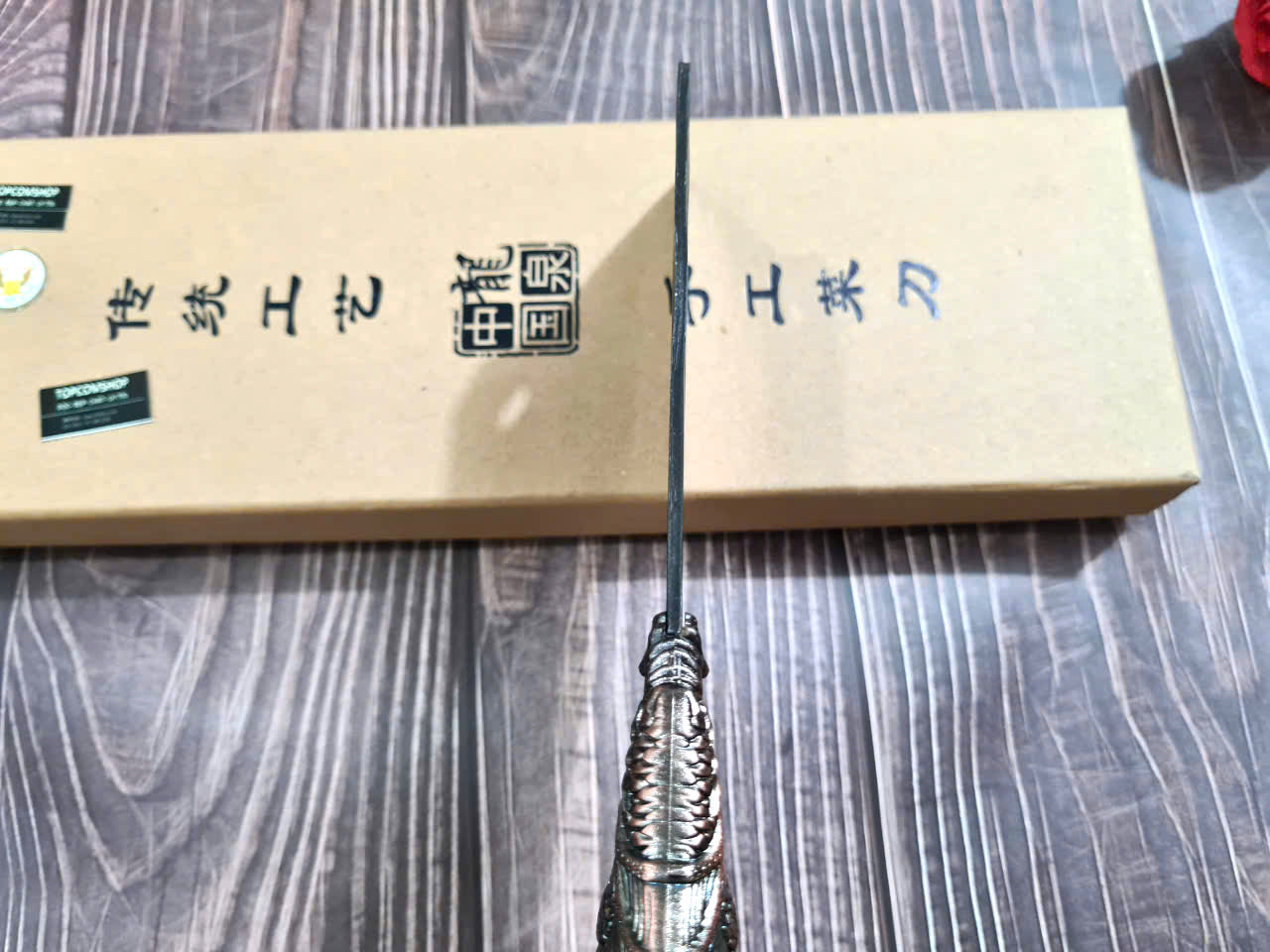 THÔNG TIN SẢN PHẨM ều dài TỔNG: 31cm Chiều dài lưỡi: 18.5cm Chiều rộng lưỡi: 8cm, Độ dày lưỡi: 2.7mm Trọng lượng: 0,35kg chất liệu lưỡi : 4Cr13MOV (thép 4 crom 13 molypden vanadi)