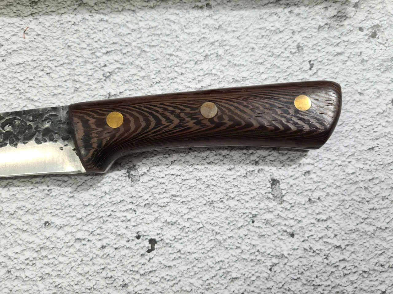 • Chất liệu: Thép Nhật 420J2, độ cứng 53HRC – siêu bền, chống gỉ • Lưỡi dao: Dày 2.5mm, sắc bén, hoàn thiện bằng đá mài nước • Tay cầm: Gỗ Pakka sang trọng, chống