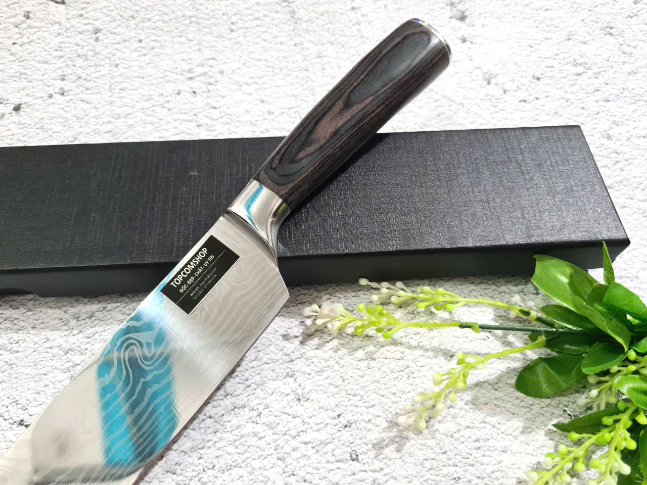 TLVN-Dao Làm Bếp hoàn thiện lưỡi dao thép Damascus 67 lớp lõi VG10