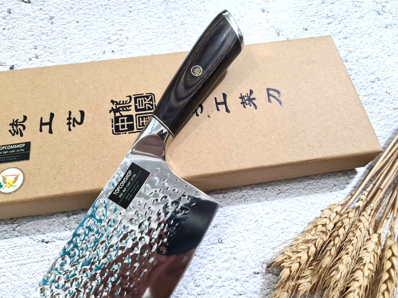 - Cán được làm bằng gỗ Pakka có vẻ ngoài thanh lịch, Lưỡi Được làm từ chất liệu thép 7Cr17 cao cấp giúp D có độ sắc rất lâu, rất ýt khi phải mài.