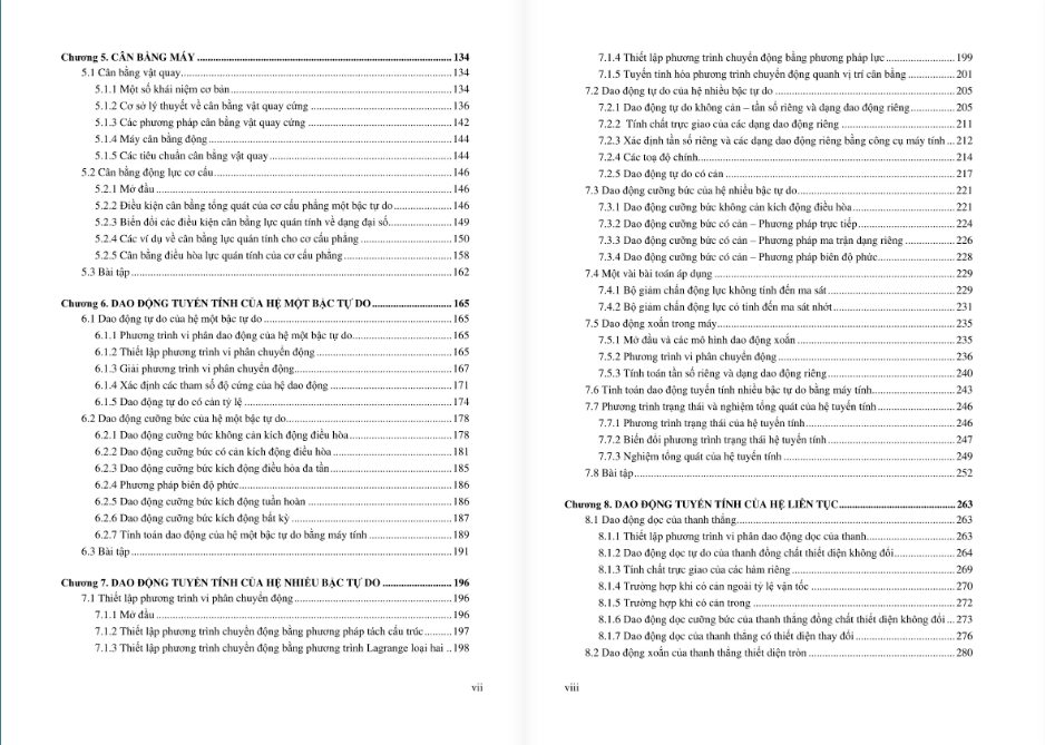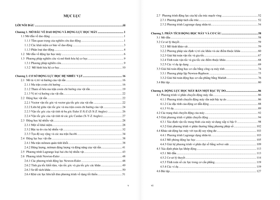 Cuốn giáo trình Dao động và động lực học máy được biên soạn theo ý tưởng của cuốn sách “Dynamics of Machinery” của các giáo sư H. Dresig và F. Holzweissig, bao gồm 9 chương: Chương 1