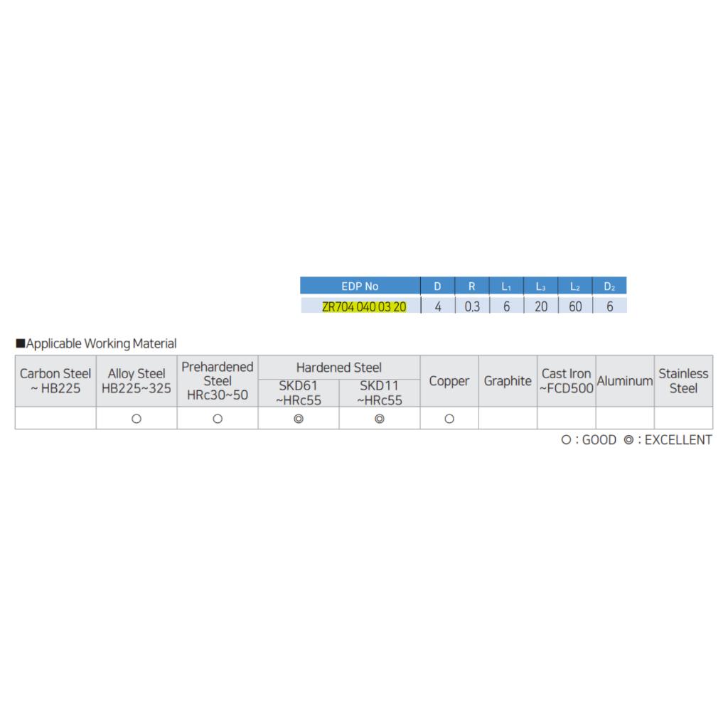 Widin là thương hiệu đến từ Hàn Quốc - thành lập đến nay hơn 34 năm, cam kết theo đuổi sự hài lòng của khách hàng trong thị trường toàn cầu hóa. Các dòng phay ngón, mũi khoan đa năng - đa dạng của hãng có chất lượng, giá cả cạnh tranh trên thị trường. Widin Series ZR704 Thương hiệu: Widin (Hàn Quốc) Mã sản phẩm: ZR704 040 03 20 Dao phay 4mm R0.3 4me cắt Địa chỉ: 24, Đường số 16, Cư xá Lữ Gia, Phường 15, Quận 11, TP. HCM