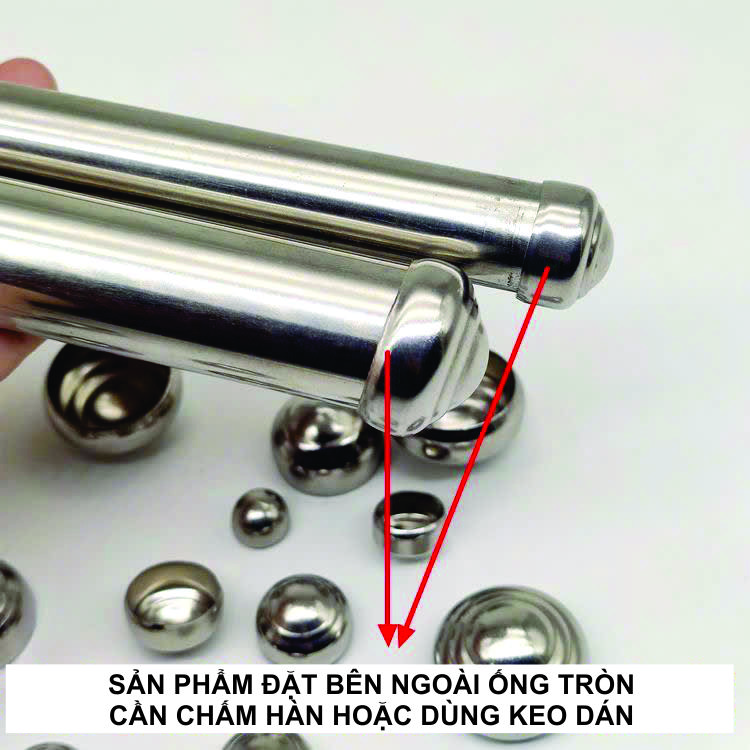 - Đường kính trong 25,5MM (đối với ống có đường kính ngoài 25MM) Lưu ý: Nắp bịt sẽ bị lỏng khi lắp vào bên ngoài ống tròn. Bạn cần hàn điểm hoặc bôi keo lên miệng ống tròn!
