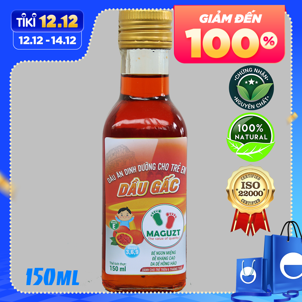 - Bé trên 1 tuổi: Cho 1 đến 1.5 muỗng dầu vào mỗi bữa ăn Lưu ý: Mẹ nên sử dụng luân phiên các loại dầu vào các bữa ăn cho từng bữa ăn khác nhau như: Dầu Oliu, Dầu Óc Chó, Dầu Hạt Chia, Dầu Mè Để đảm bảo bé được hấp thụ đầy đủ các loại chất có trong từng loại dầu ăn dặm. Mua dầu gấc loại nào tốt? Như đã thấy, dầu Gấc Maguzt là sự kế hợp của dầu gấc và dầu mè đen nguyên chất. Sản phẩm áp dụng công nghệ tiên tiến trên một quy trình khép kín hiện đại. Ngoài ra, các sản phẩm của Maguzt còn được chứng nhận tiêu chuẩn vệ sinh an toàn thực phẩm toàn cầu ISO 22000. Các mẹ có thể hoàn toàn yên tâm về chất lượng của Maguzt.