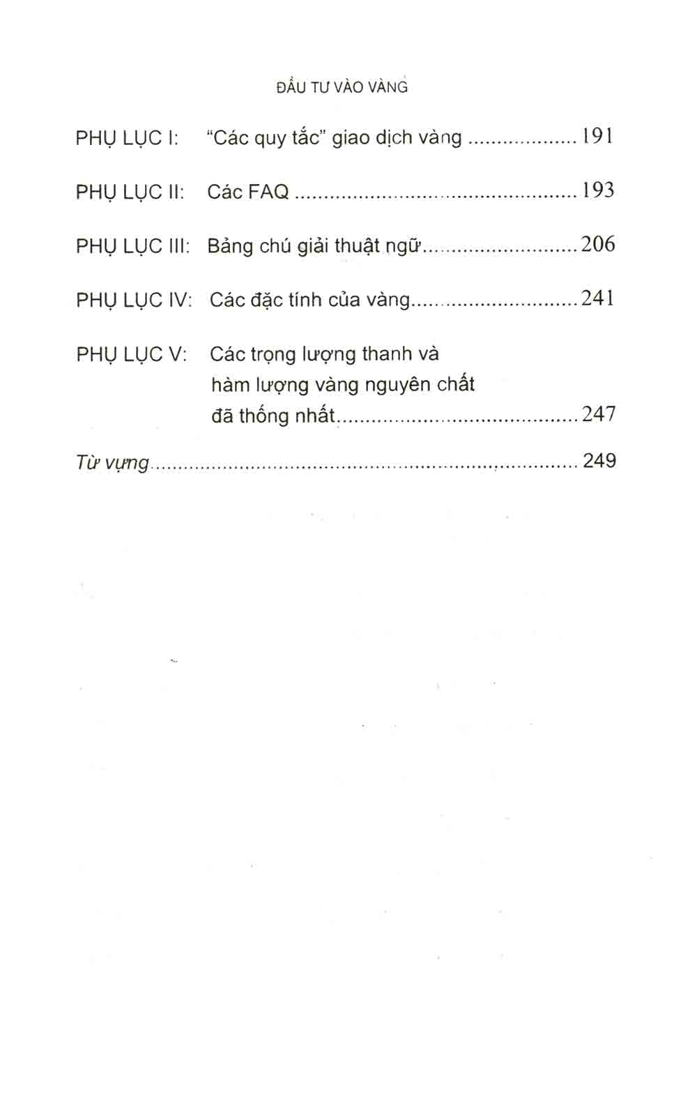 Tại Việt Nam, thị trường vàng được ông Albert Cheng, Tổng Giám đốc Hội đồng Vàng Thế giới – khu vực châu Á nhận định là “có tốc độ phát triển nhanh nhất”. Đây là một kênh đầu tư siêu lợi nhuận nhưng cũng ẩn chứa rất nhiều rủi ro. Hy vọng cuốn sách này sẽ giúp các nhà đầu tư có cơ sở vững chắc để hiểu đúng thị trường vàng và đưa ra những quyết định đầu tư tốt nhất cho mình.
