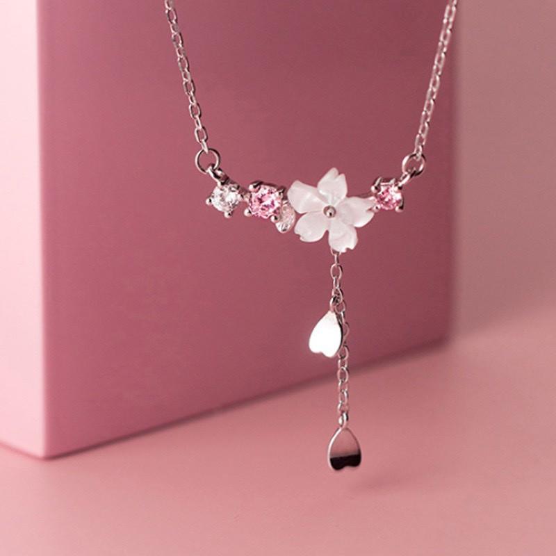Dây chuyền bạc 925 hoa mai thả xích tag trái tim duyên dáng thanh lịch Dế Bạc - D4430
