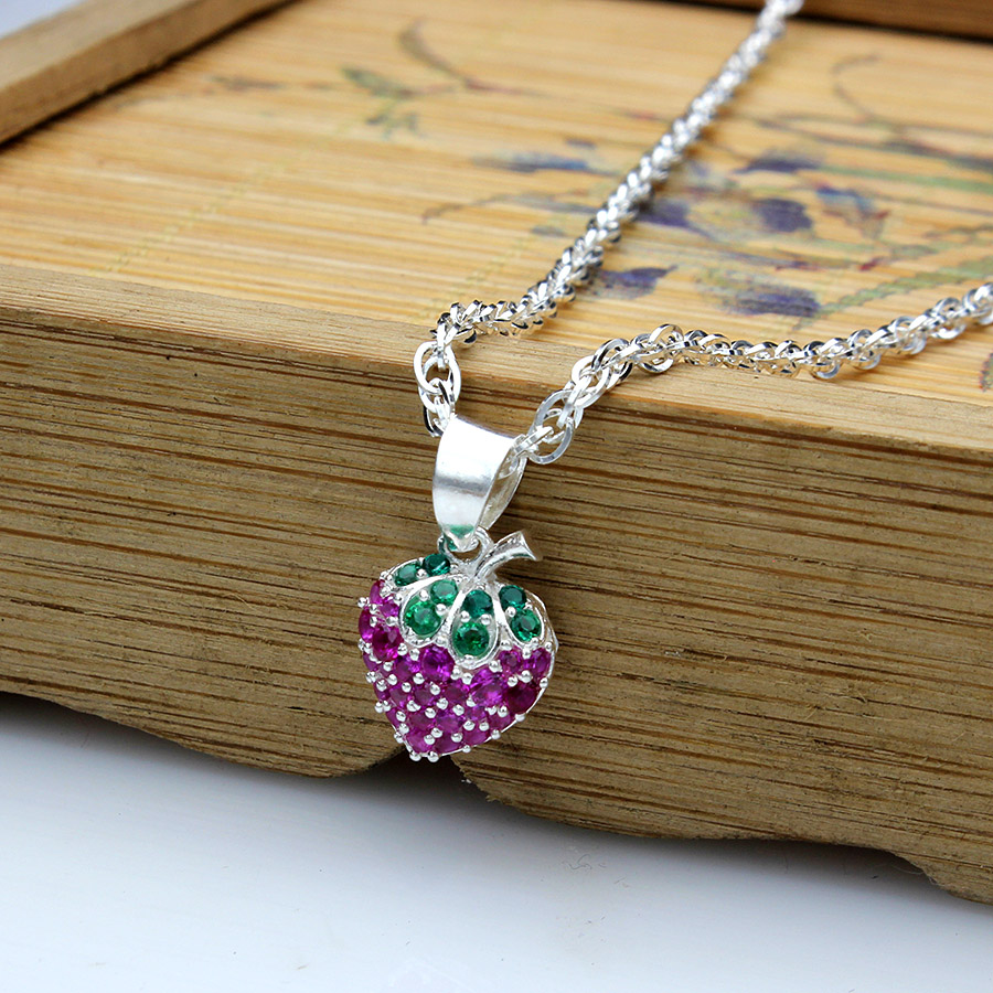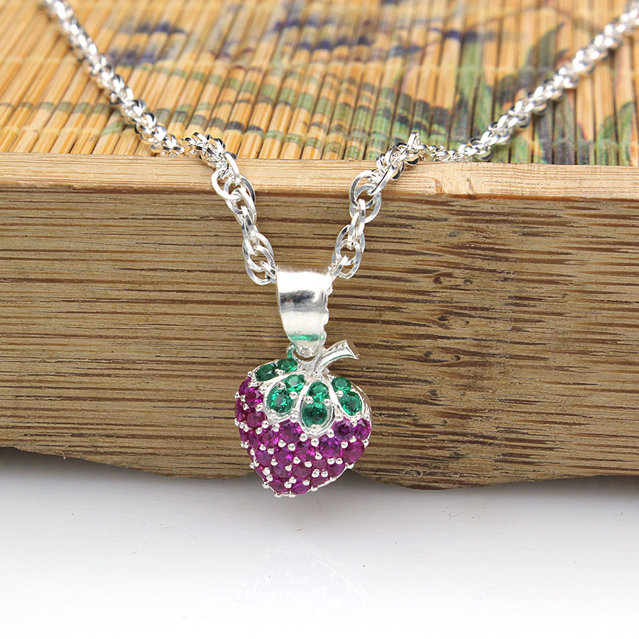 ✨Dây Chuyền Trẻ Em Bạc Hiểu Minh DTE050 Quả Dâu Tây
