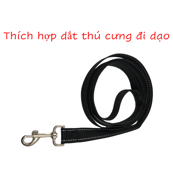 Màu sắc: Màu đen viền trắng, màu sắc dễ phối với các loại vòng cổ khác nhau. Chất liệu: Vải dù. Kích thước: Dài 1m Đầu móc khoá inox bền và không gỉ sét. Thích hợp sử dụng cho: Chó, mèo, các loại thú cưng khác.