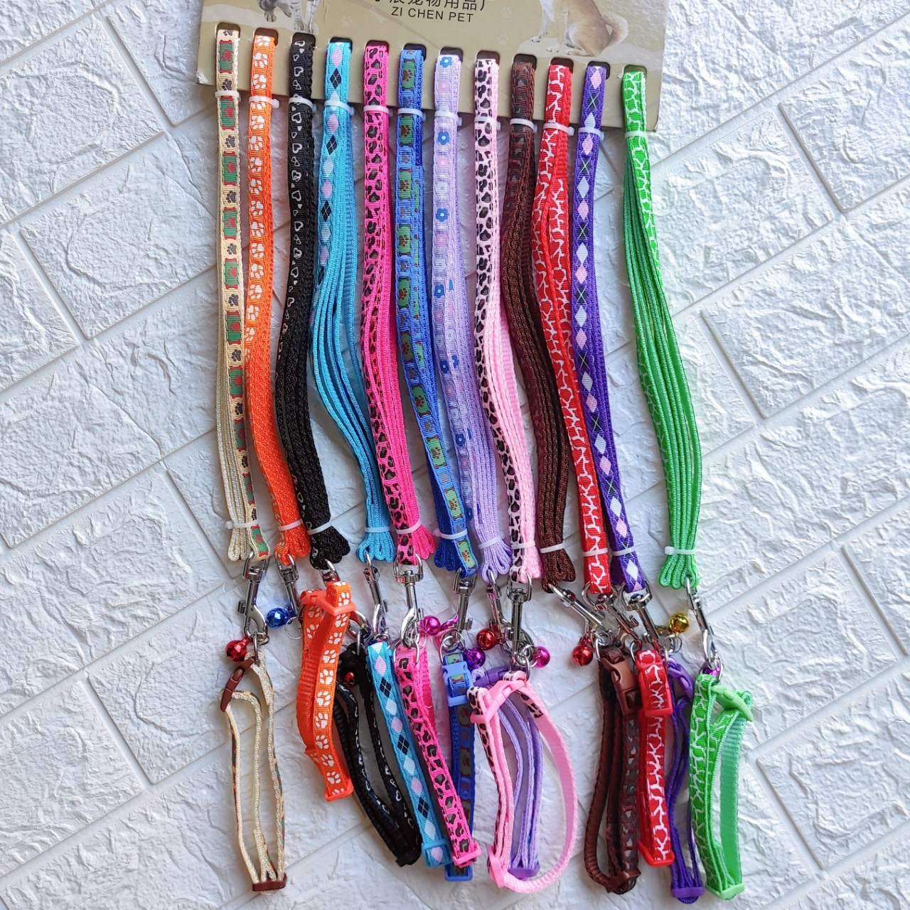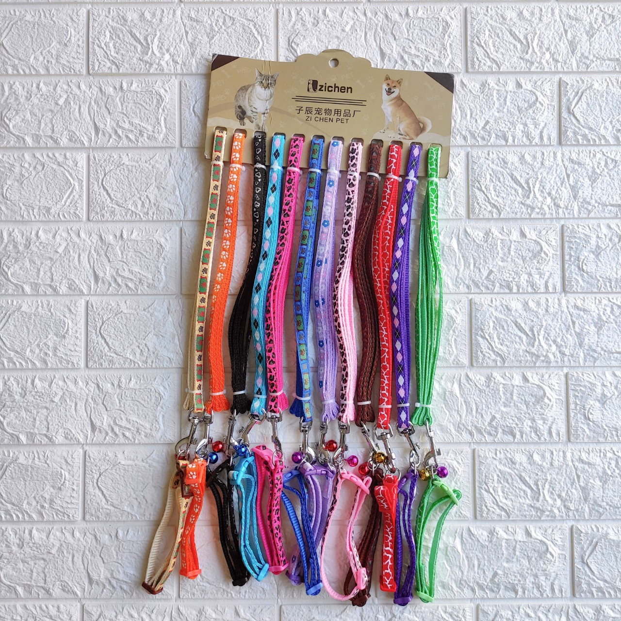 Dây dắt kèm vòng cổ có chuông cho Chó Mèo Dưới 5kg Bản rộng 1cm In họa tiết hoạt hình Chất liệu dù an toàn, Chắc chắn * QUY CÁCH ĐÓNG GÓI GỒM: - 1