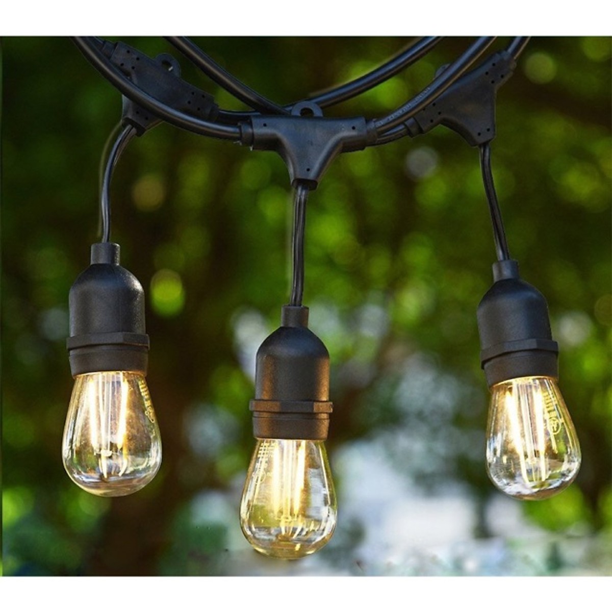 Dây đui E27 ngoài trời. Phong cách châu âu, tiêu chuẩn chống nước. Quy cách 1 bộ dài 5m 10 đui, 10m 20 đuôi đèn, đầu cuối có đầu chờ để cắm sang dây tiếp theo, rất tiện loại trang trí chiếu sáng ngoài trời. Dây 10m có 20 đuôi đèn nghĩa là khoảng cách 50cm 1 đuôi , Quý khách có thể dùng Bóng LED Edison vỏ thủy tinh trong suốt hoặc Bóng LED tròn vỏ nhựa kín đuôi.