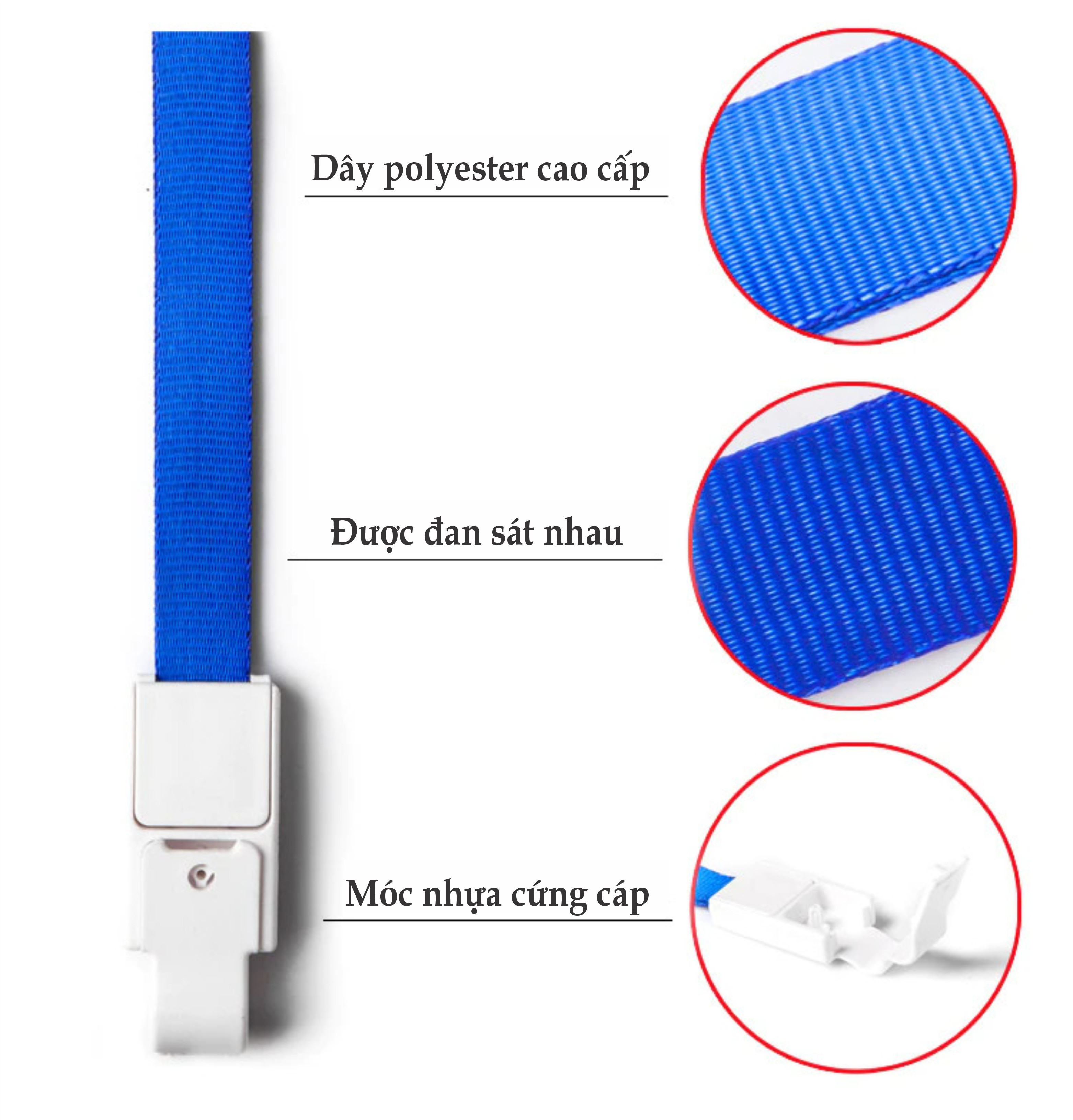 - Lốc 10 Sợi Dây Xoay Đeo Xanh Dương - Uyên Loan được thiết kế đơn giản nhưng không kém phần tinh tế. - Kích cỡ tiêu chuẩn theo dạng thẻ nhân viên phổ biến,