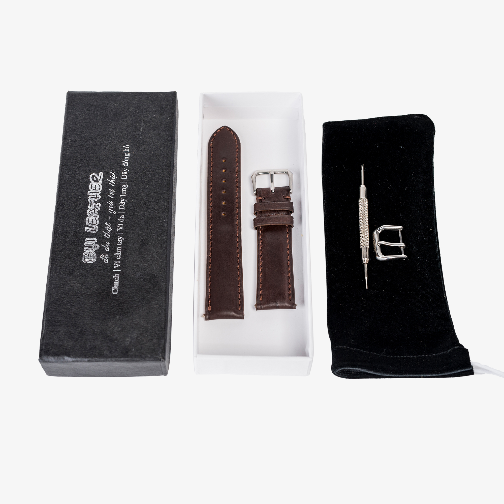 Dây da đồng hồ cao cấp HANDMADE 017 - Dây da Bò, Khâu tay thủ công - Màu Nâu Chocolate