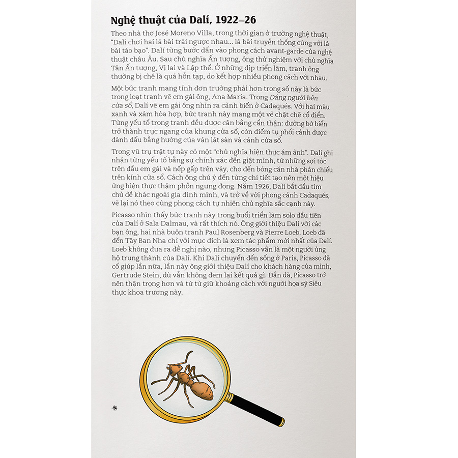 Salvador Dalí là một trong những nghệ sỹ nổi tiếng nhất thế giới, cả vì phong cách sống hoang toàng, chòm ria mép bất chấp trọng lực, cho đến thứ nghệ thuật kỳ lạ của ông. Cuốn sách này kể về cuộc đời của Dalí và khám phá ý nghĩa của những bức tranh Siêu thực của ông. Tinh túy của chủ nghĩa siêu thực Dalí chính là: nơi cái bình thường trở thành cái phi thường. Dalí tự xem mình là một bậc thầy Phục Hưng – một kiện tướng về vẽ tranh sơn dầu – nhưng ông phá tan và vượt ra ngoài cái quy củ gọn gàng, ngăn nắp của mỹ thuật. Những tác phẩm quan trọng trong sự nghiệp của Dalí đều được giới thiệu đầy đủ trong cuốn sách này, từ Dáng người bên cửa sổ, đến Những ngày đầu tiên của mùa xuân, Sự dai dẳng của ký ức…