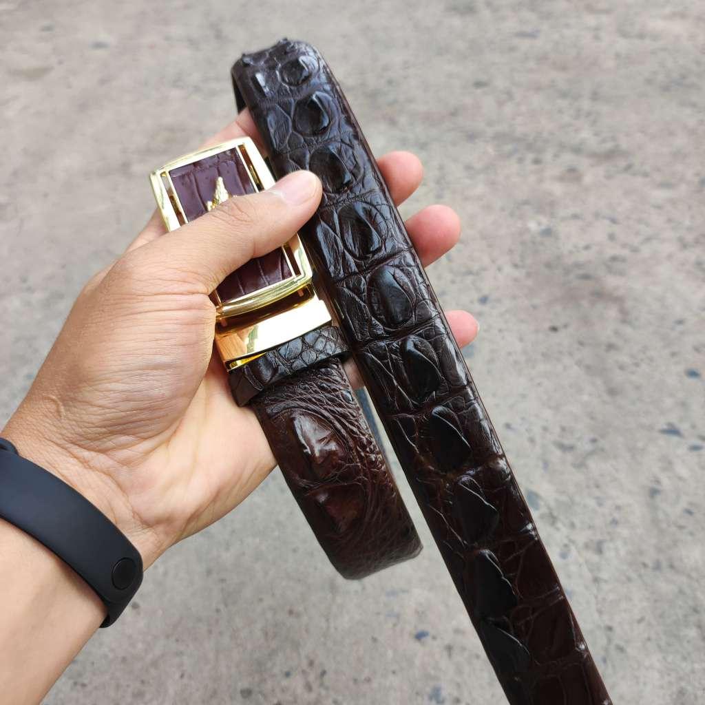 Mua tại TiktokThắt lưng da cá sấu nguyên con chạy từ gù cổ qua gai lưng đến vây đuôi của cá sấu. Mặt khóa tì tự động không rỉ sét.