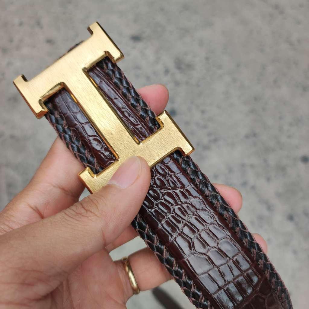 ✨Dây thắt lưng cá sấu bản lớn có Đan viền thủ công. Cắt liền tấm da bụng cá sấu siêu bền!