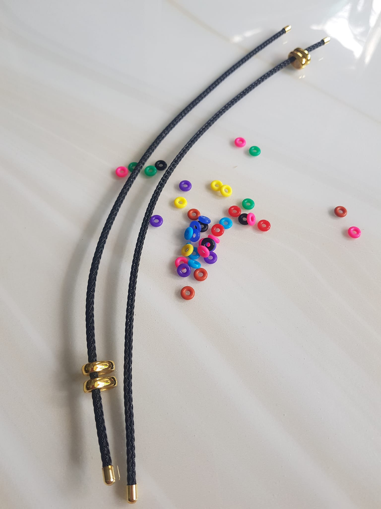 ✨DÂY VÒNG TAY MÀU ĐEN DẺO CO GIÃN CÓ 2 KHOEN VÀNG NỮ PHỐI VỚI HẠT LU ĐÁ TỰ NHIÊN CÁC LOẠI VÀO LÀM VÒNG ĐEO TAY KIỂU Ạ SIZE DÂY 3MM Ạ ANH CHỊ VỀ ĐỂ HẠT LU VÀO Ở GIỮA RÚT DÂY VÀO 2 LỖ KHOEN VAOFNG TRÊN DÂY LÀ ĐEO ĐẸP Ạ