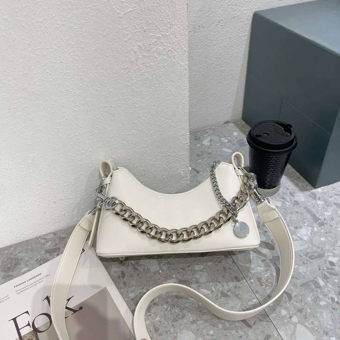 Túi xách nữ thời trang phối màu trắng – đen kèm dây xích trang trí
