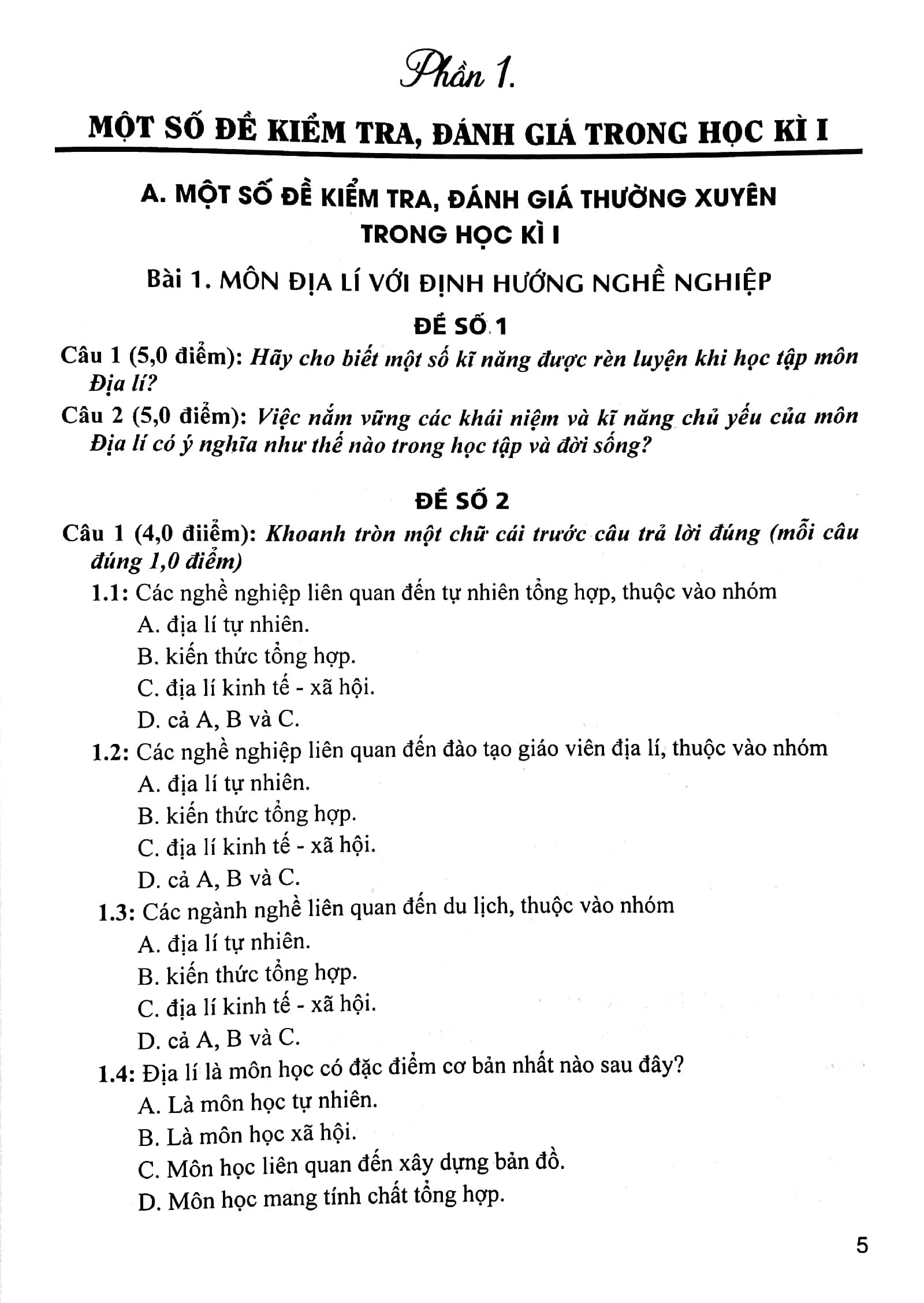 Để giúp các em có tài liệu thực hành các dạng đề trong quá trình học bài, tự ôn tập để chuẩn bị cho các kì kiểm tra, chúng tôi biên soạn cuốn ĐỀ KIỂM TRA, ĐÁNH GIÁ ĐỊA LÍ 10. Sách được viết dựa vào chương trình sách giáo khoa Địa lí 10 (SGK “Kết nối tri thức với cuộc sống”).