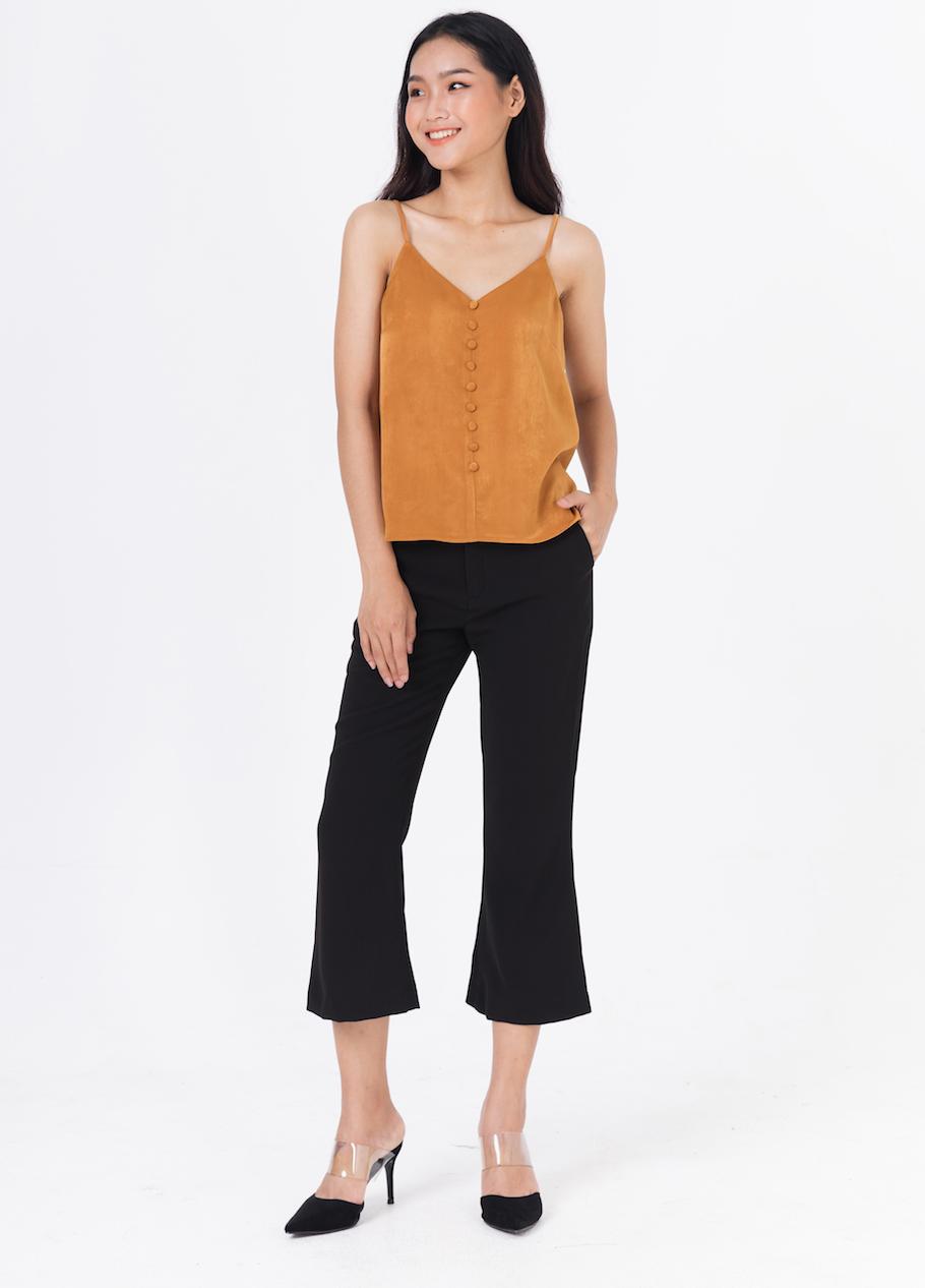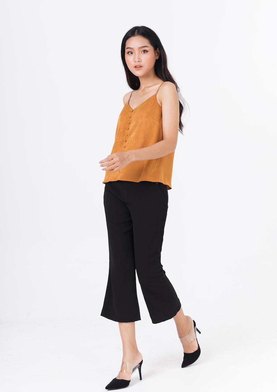 Áo 2 Dây với hàng cúc bọc tạo điểm nhấn trẻ trung, nữ tính. Áo có thể phối theo nhiều phong cách, với quần sóc hay quần tây cá tính, hoặc với chân váy xoè