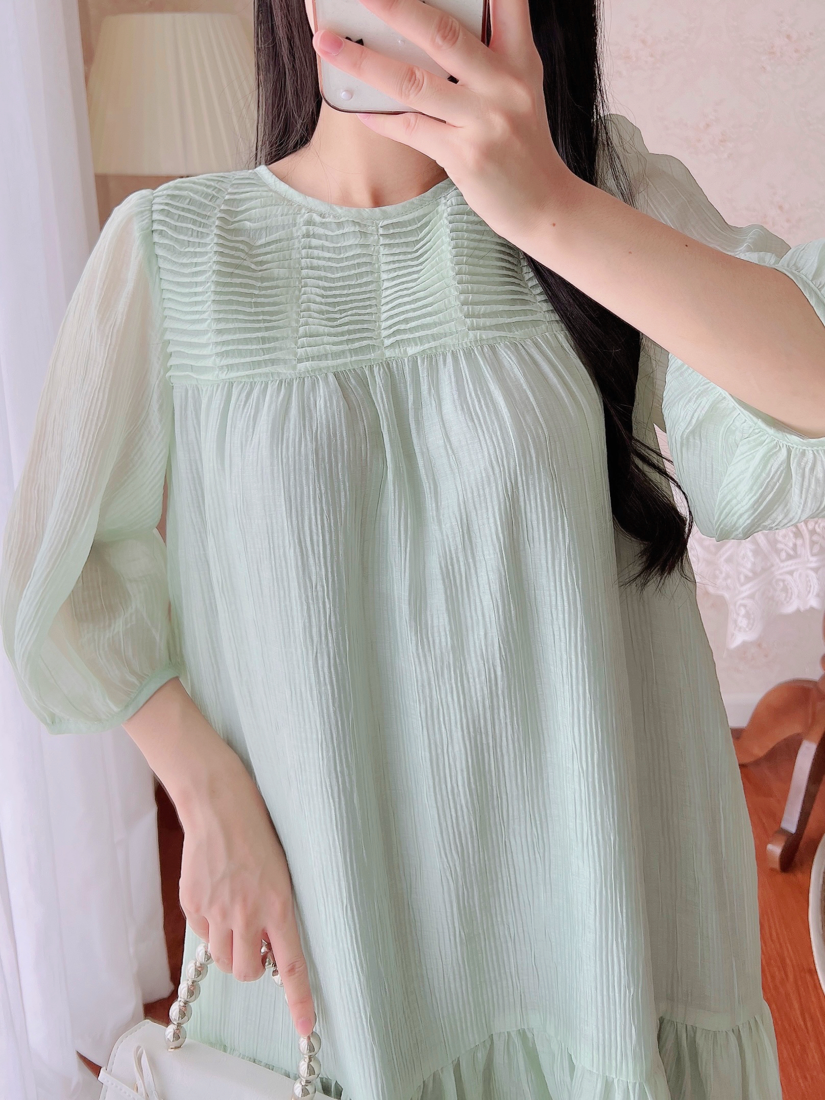 - Đầm cổ tròn, tay lỡ