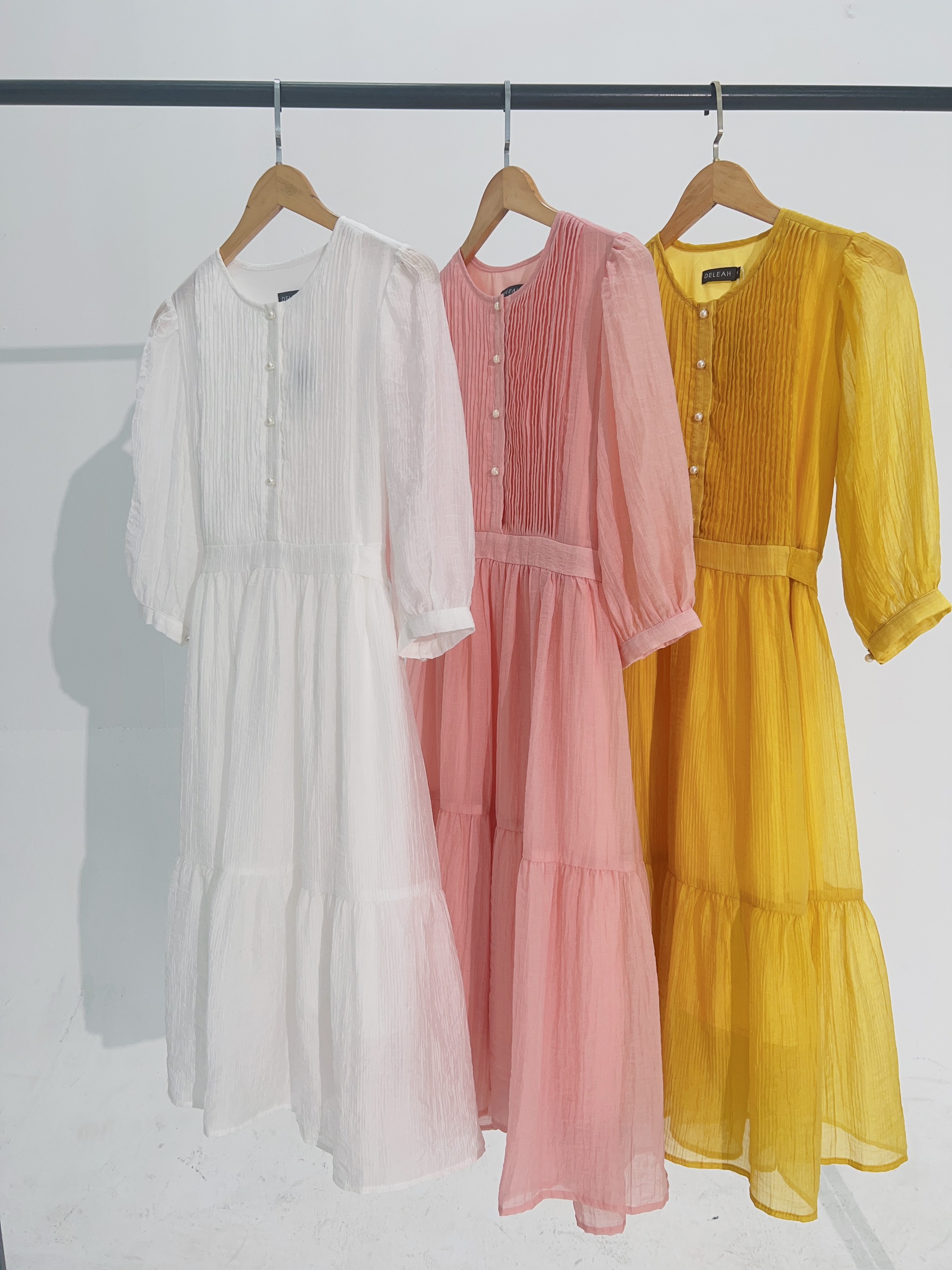 - Màu sắc : Vàng - Chất liệu : Kate xước - Đặc tính : Nhẹ , thoáng mát, ít nhăn - Lưu ý giặt ủi : Giặt riêng, giặt tay, giặt máy Ủi ở nhiệt độ thấp - Size : S / M - Thông số sản phẩm : Dài váy / Ngang ngực S: 113 / 92 M: 115 / 96 LƯU Ý: + Bảng size chart chỉ mang tính chất tham khảo, tùy thuộc vào số đo cơ thể Dottie sẵn sàng tư vấn cho bạn. + Nếu cần Dottie hỗ trợ về sản phẩm, khi mở sản phẩm bạn vui lòng quay lại video quá trình mở sản phẩm giúp Dottie nhen. + Giặt riêng với đồ tối màu + Khuyến khích giặt tay đối với những sản phẩm trắng + Hạn chế sấy ở nhiệt độ cao QUY ĐỊNH ĐỔI TRẢ • Thời gian: