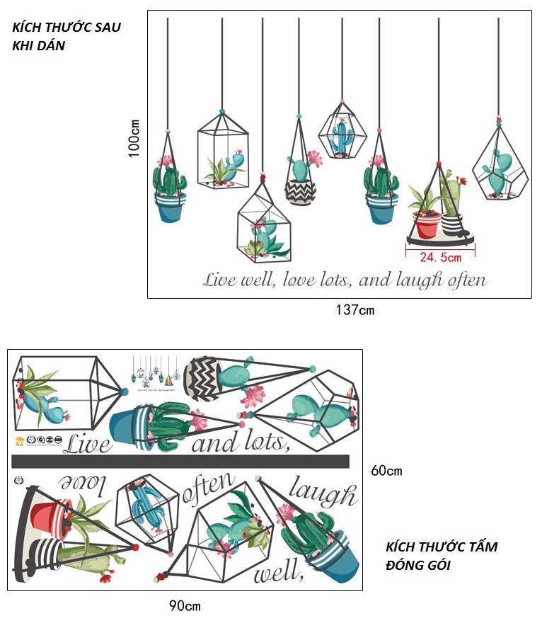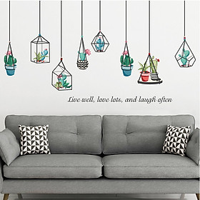 Decal dán tường Giàn treo chậu xương rồng màu sắc tươi sáng, hình ảnh 3D,tạo cảm giác cho căn phòng của bạn trở nên mát mẻ, khác biệt, tràn đầy không khí thiên nhiên, trong lành.