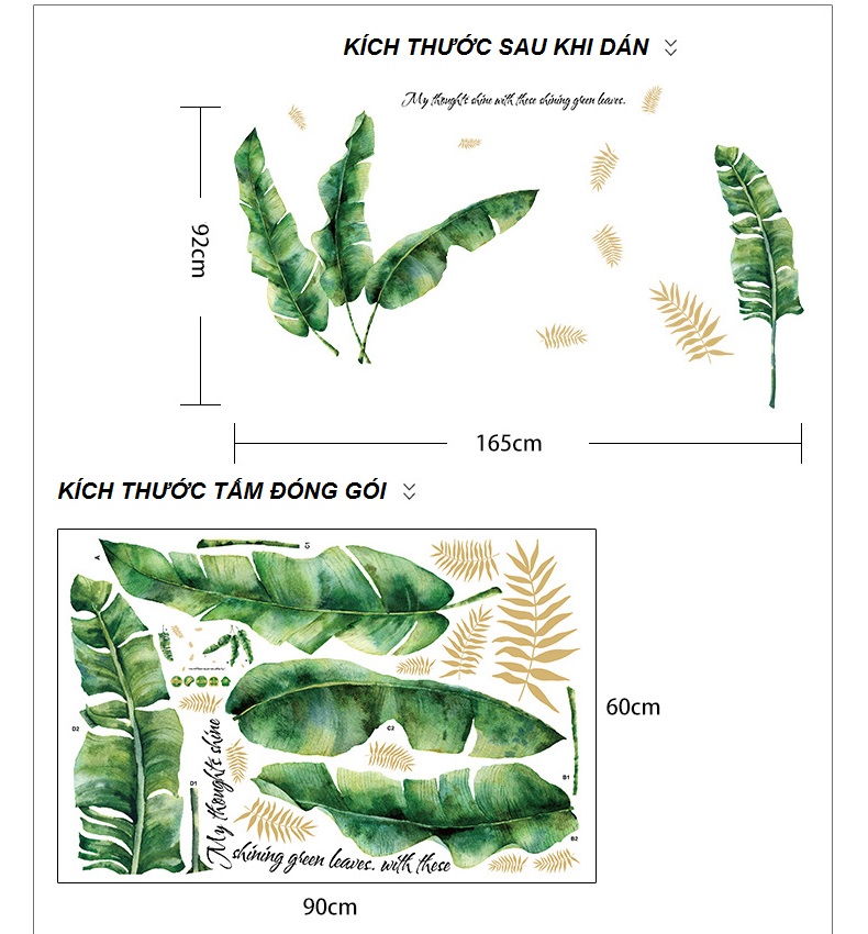 Video Giải thích quy cách đóng gói và cách dán sản phẩm [ Size Lớn ] Decal dán tường kết hợp Lá xanh - Bụi Tre và Sen AM9104+0779C+XY1097AB Kích thước sản phẩm khi đóng