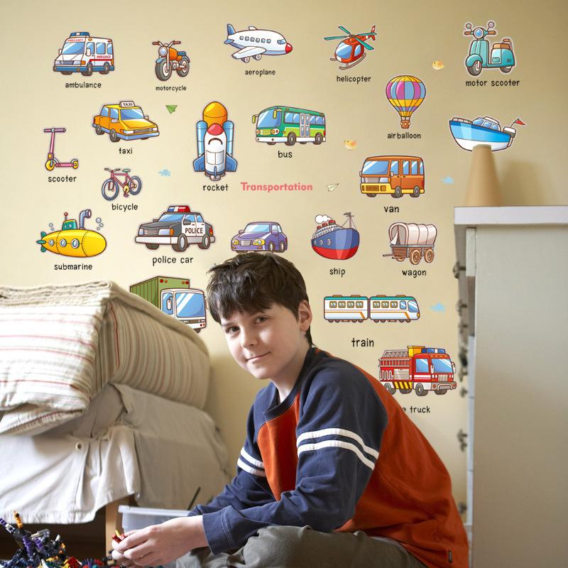 ✨Decal trang dán tường Tiếng anh các loại phương tiện giao thông HM92024