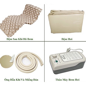 Đệm hơi chống loét cấu tạo gồm nhiều múi khác nhau, khi bơm hoạt động thì hơi sẽ được luân chuyển liên tục từ múi hơi này sang múi hơi khác tạo cảm giác êm ái, thoáng mát, chức năng giảm áp lực tiếp xúc lên bề mặt da, tránh lở loét cho người bệnh phải nằm lâu ngày, đặc biệt có tác dụng tránh đau nhức khi người bệnh không muốn vết đau tiếp xúc trực tiếp với giường chiếu.