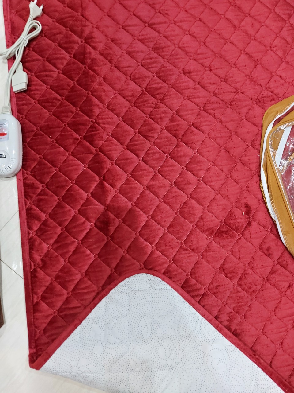 - Chất liệu nhung nỉ , màu đỏ đô. đệm sưởi Hàn Quốc giúp đảm bảo độ ấm tuyệt vời cho cơ thể vào những đêm đông giá rét; giúp loại bỏ ẩm thấp nơi giường nằm, đảm bảo cho giường nệm luôn khô ráo và ấm áp. Chăn điện rất tốt cho sức khỏe người dùng, tốt hơn khi dùng cho người già và những người bị chứng đau lưng mỏi cơ, thấp khớp Khuyến cáo khi sử dụng đệm điện Hàn Quốc: Khi khởi động cắm chặt đầu giắc vào chăn, chỉnh điều khiển về số 4 hoặc 5 tầm 7 đến 10 phút là nóng đều, thì điều chỉnh số về 1 SỐ 2 theo thời tiết. - Khi gấp chăn không nên để bộ điều khiển nhiệt ra ngoài mà nên để trong lòng chăn để đảm bảo tuổi thọ cho bộ điều khiển.