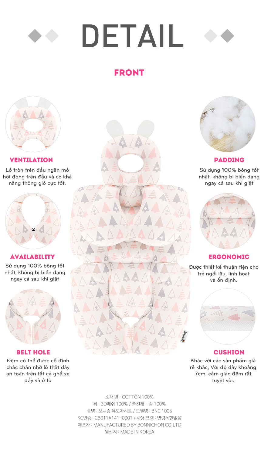 Đệm lót xe đẩy, ô tô cho bé thương hiệu BONNICHON cao cấp (chính hãng Hàn Quốc) Đệm lót xe đẩy tốt nhất được Hàn Quốc kiểm chứng !! Đứng đầu về doanh số bán