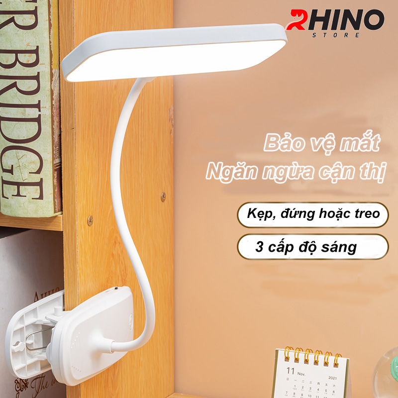 Mua tại TiktokĐèn học LED ánh sáng trắng gắn kẹp tiện lợi bảo vệ mắt chống cận cảm ứng Rhino L203, tích điện đa năng làm việc, để bàn học, đọc sách, đèn ngủ nhiều chế độ sáng, đèn led chính hãng