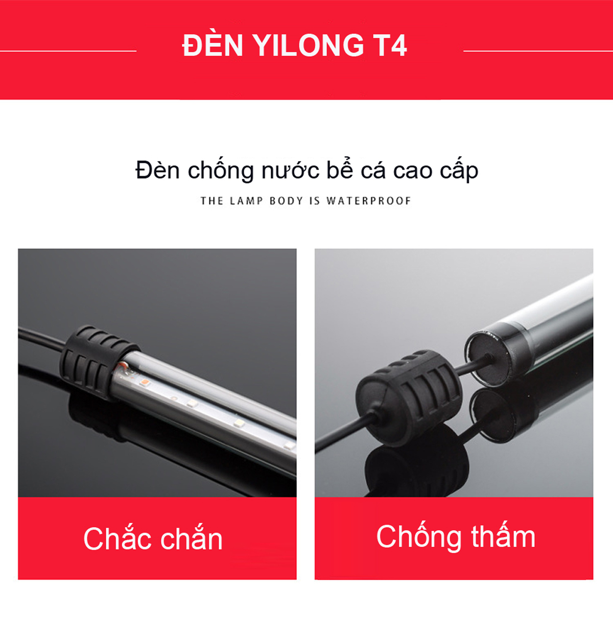 • Đèn bể cá cảnh sở hữu hệ thống khép kín, chống thấm nước, chống rò điện, và tuyệt đối an toàn cho người sử dụng.