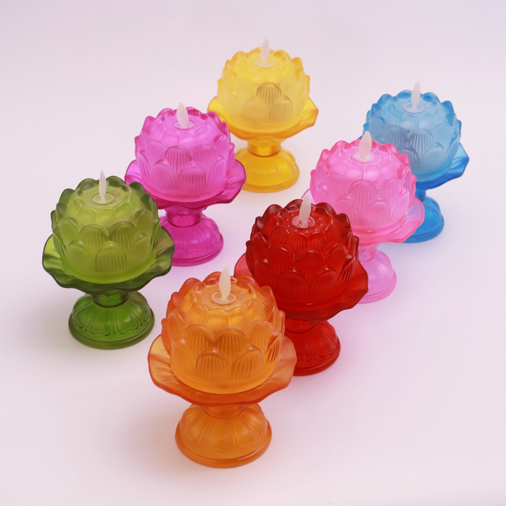 ✨Đèn Nến Điện Tử Hoa Sen Thủy Tinh Nhiều Màu, Dùng Trang Trí Để Ban Thờ Cúng