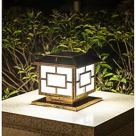 Đèn trụ cổng năng lượng mặt trời TC02: Kiểu dáng đèn được thiết kế theo phong cách Châu Âu màu vàng đồng mang lại vẻ sang trọng và quý phải, góp phần tô điểm thêm nét đẹp cho ngôi nhà của bạn.