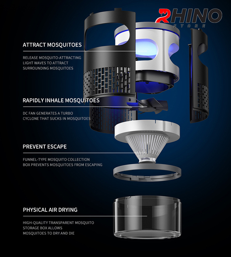 Đèn Diệt Muỗi phát ra tia UAV để thu hút côn trùng, ruồi, muỗi và các loại côn trùng bay trong phạm vi 360 độ xung quanh đèn. Khi côn trùng bay vào thân đèn,