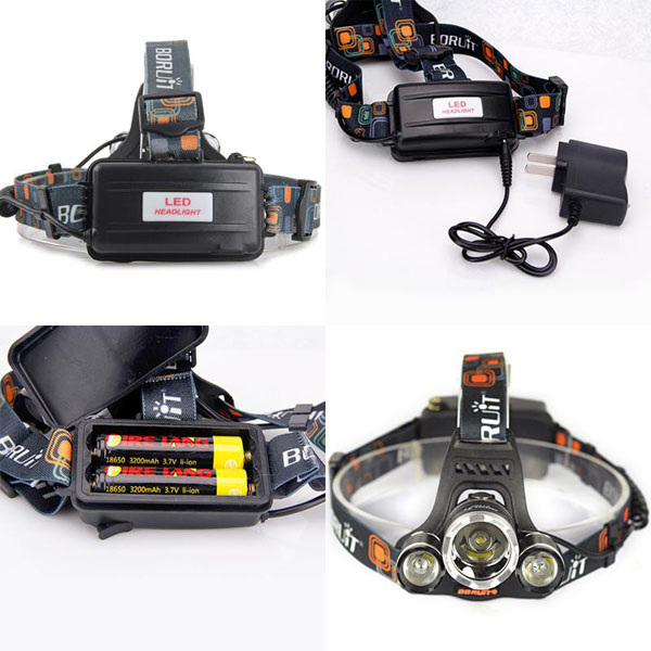 Đèn pin đội đầu 3 bóng Led T6 siêu sáng tặng kèm sạc và 2 pin