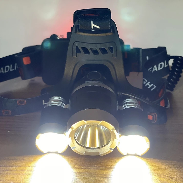 Đèn Pin LED siêu sáng đội đầu được thiết kế gọn nhẹ, đẹp, sang trọng và rất tiện dụng. Với độ sáng có thể lên tới 5000 Lumens khi bật toàn bộ 3 đèn, có thể điều chỉnh góc chiếu, có thiết bị báo đỏ phía sau.